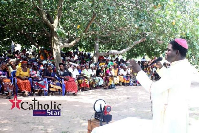 Most Reverend Wilfred Anagbe, Catholic Bishop of Makurdi Diocese addressing Mbaivur Women Progressive Association
