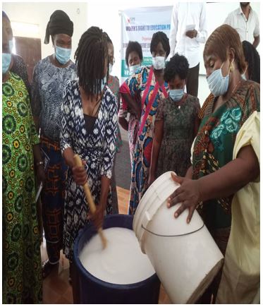 Highlight of the training was a demonstrative production of liquid soap and hand sanitizer led by Dorcas Iorkusah.
